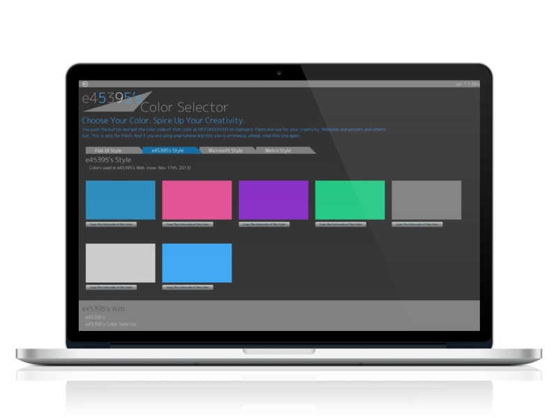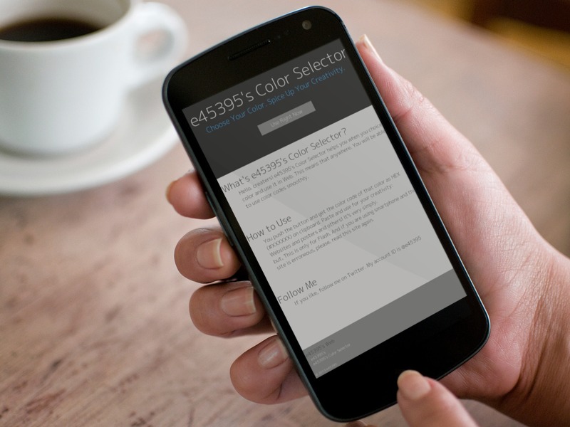 Hello, creators! e45395's Color Selector helps you when you choice color and use it in Web. This means that anywhere. You will be able to use color codes smoothly.